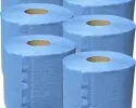 Blue Centrefeed is made with 2 ply tissue paper and is 18cm wide by 150m long with a diameter of 19cm, hygienically shrink wrapped into a case of 6 rolls.