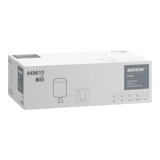Katrin Plus Coreless Centrefeed (Ref: 448610) is a premium 2‑ply white wiping solution designed for high‑demand environments where hygiene, efficiency, and sustainability matter. The coreless design eliminates cardboard waste, maximises roll capacity, and reduces the frequency of refills — ideal for busy washrooms, food areas, and commercial facilities.