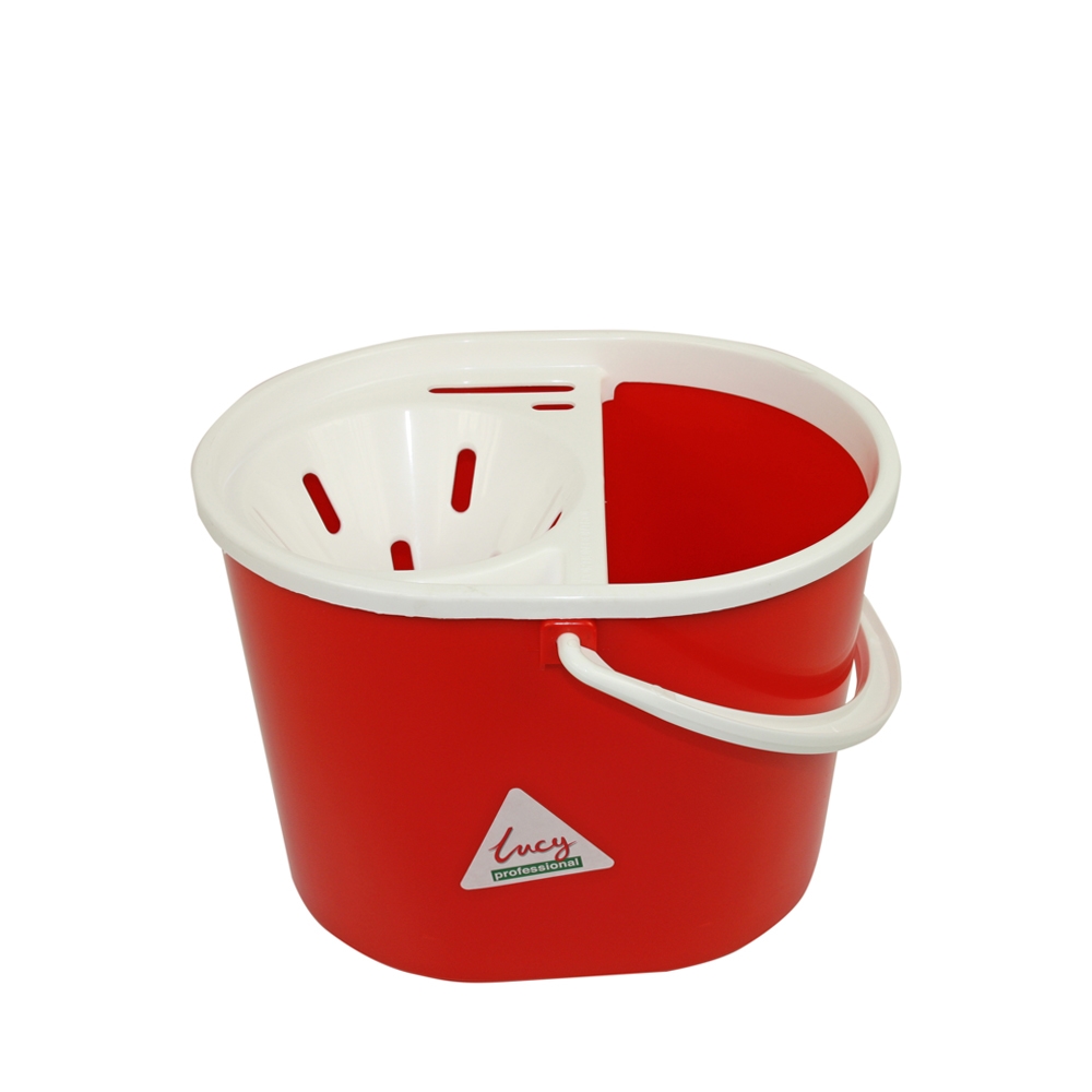 The Lucy‑R Oval Red Handle Mop Bucket & Strainer (L1500291) is a durable, practical bucket designed for daily commercial cleaning. Its oval shape provides excellent stability, while the built‑in strainer/wringer makes it easy to remove excess water from socket mops.