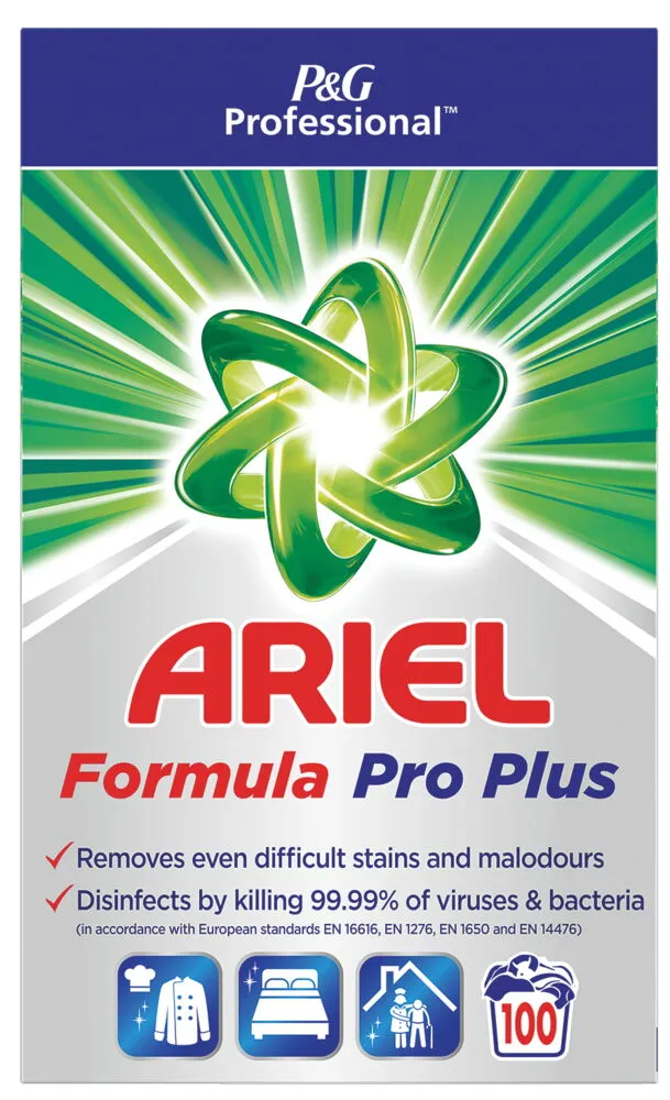 Ariel Formula Pro+ Antibac is a high‑performance professional laundry detergent designed to deliver exceptional cleaning results while providing proven antibacterial action. Formulated for commercial and high‑demand environments, it removes tough stains, grease, body soils, and odours while helping to eliminate bacteria for hygienically clean laundry.