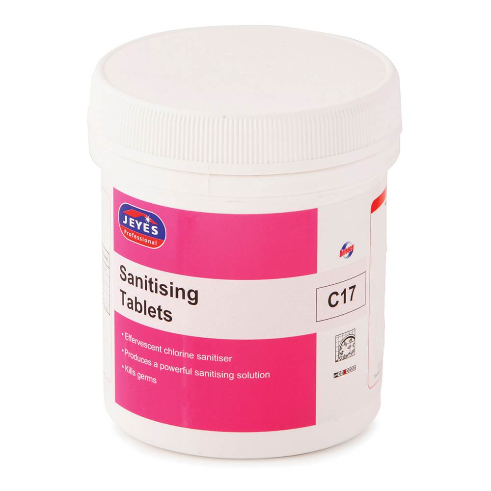 Selden Santabs (YC17S) are stabilised chlorine disinfectant tablets designed for fast, reliable sanitising across a wide range of environments. Each effervescent tablet dissolves quickly in water to produce a controlled, accurate concentration of available chlorine, making them ideal for food‑safe sanitising, surface disinfection, and general hygiene control.