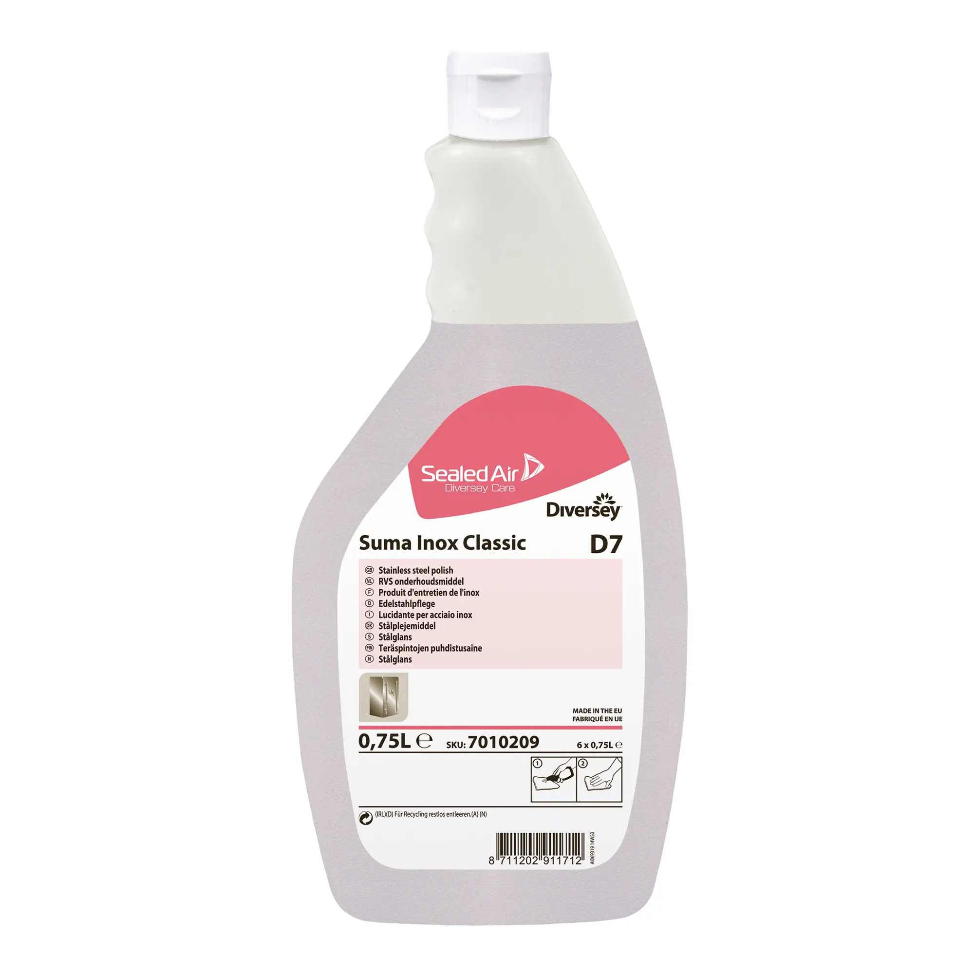Suma Inox Classic D7 (L7010209) is a high‑quality stainless‑steel polish designed to clean, shine, and protect metal surfaces in professional environments. Its specialised formula removes fingerprints, smudges, and light soils while leaving a durable, water‑resistant protective film that helps prevent future marking.