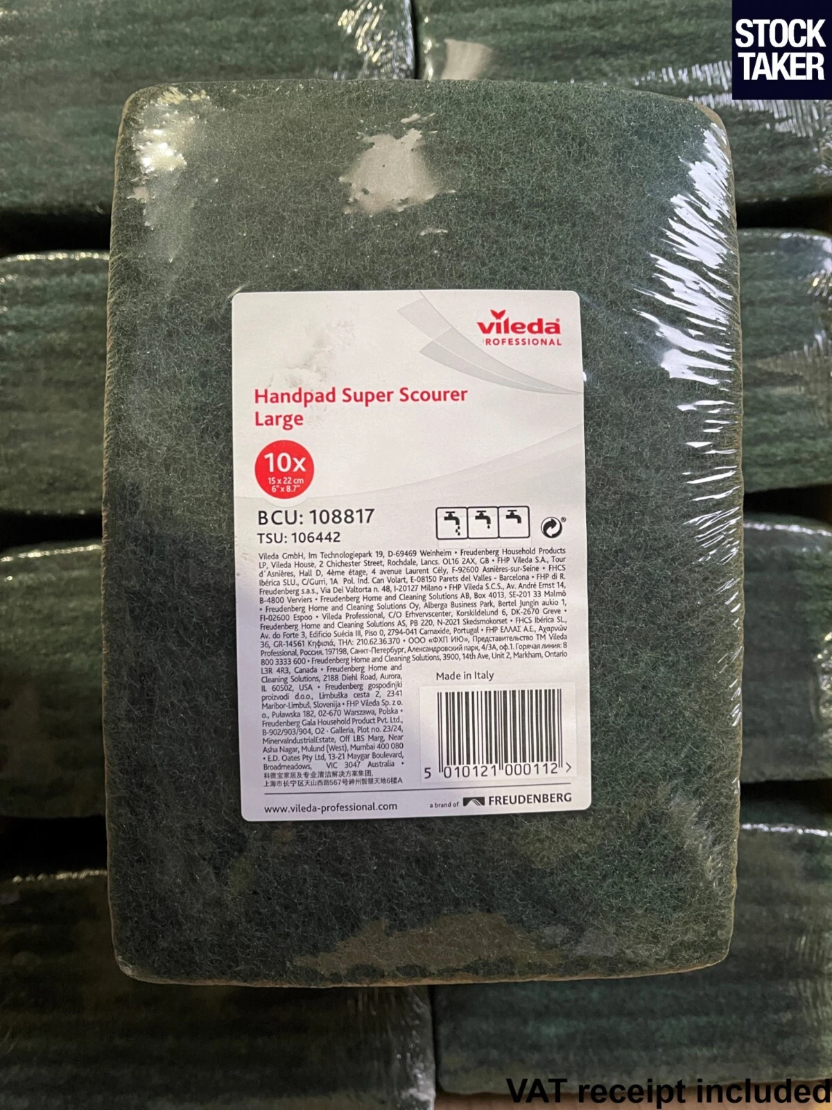 The Vileda M4 Super Scourer is a premium, oversized abrasive pad designed for tough, high‑intensity cleaning jobs. Measuring 15 x 22cm, it offers a much larger working surface than standard scourers, making it ideal for scrubbing large areas, removing baked‑on residues, and tackling stubborn grime in commercial and industrial settings.