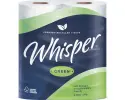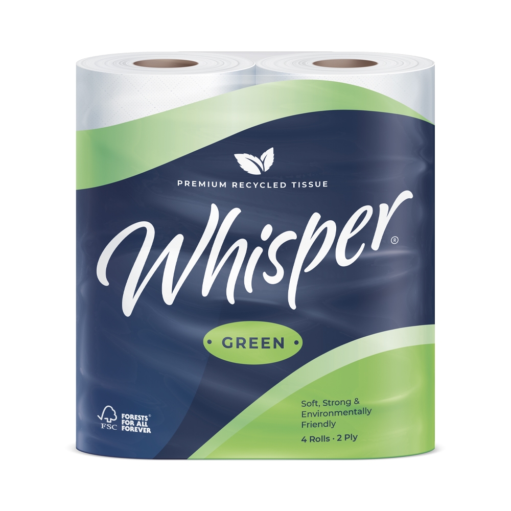 Whisper Green is THE choice for premium, environmentally friendly toilet tissue. Balancing FSC© certified, 100% recycled paper with the comfort, performance & quality that is synonymous with the Whisper brand. Whisper Green is ideal for sustainably conscious washroom users.