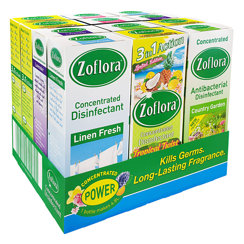 Zoflora Disinfectant Mixed Pack offers a versatile selection of Zoflora’s most popular concentrated disinfectant fragrances, giving you powerful cleaning performance with long‑lasting freshness. Each bottle kills 99.9% of bacteria and viruses, making it ideal for kitchens, bathrooms, floors, worktops, and high‑touch areas throughout the home or workplace. This mixed pack is perfect for customers who enjoy variety or want to explore multiple scents from the Zoflora range.